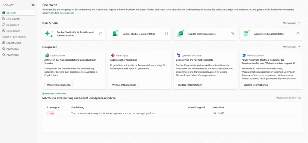 Nachdem wir uns im ersten Teil mit dem grundlegenden Dashboard befasst haben (Datenschutz in Copilot), geht es nun ans Eingemachte: Die Copilot Einstellungen. Während die Übersicht uns zeigt, wer Copilot nutzt, legen wir hier fest, wie die KI mit Daten umgeht und wo die Grenzen deines Tenants verlaufen.