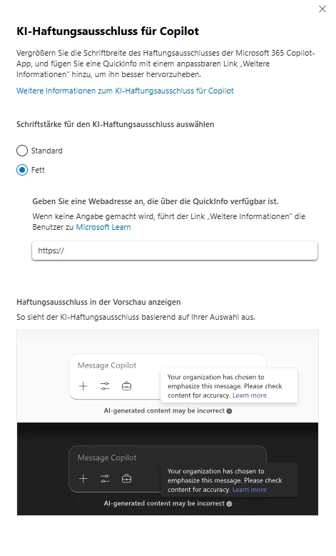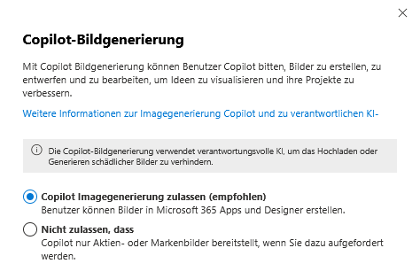 Vom verpflichtenden Haftungsausschluss über die Freigabe kreativer Features (Bild- & Videogenerierung) bis hin zur sensiblen Steuerung in Teams-Meetings: In diesem Bereich konfigurierst du die Balance zwischen einer modernen User Experience und den notwendigen Compliance-Leitplanken deines Unternehmens.