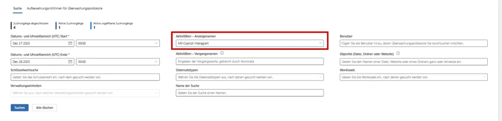 ⚠️ Wichtiger Hinweis: Wenn Du das Feature testen willst, wundere Dich nicht, wenn der Eintrag nicht sofort erscheint. Die Microsoft 365 Audit Logs arbeiten nicht in Echtzeit. Es kann erfahrungsgemäß 30 bis 90 Minuten (in Spitzenzeiten bis zu 24h) dauern, bis die Copilot-Interaktion im Purview-Portal indexiert und durchsuchbar ist.