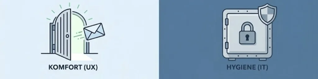 Das Feature "Chat with Email" ist ein klassisches Beispiel für den Konflikt zwischen User Experience und Systemhygiene. Für den Endanwender entfällt der "Nervfaktor", erst ein Team zu erstellen oder die IT um einen Gast-Account zu bitten.