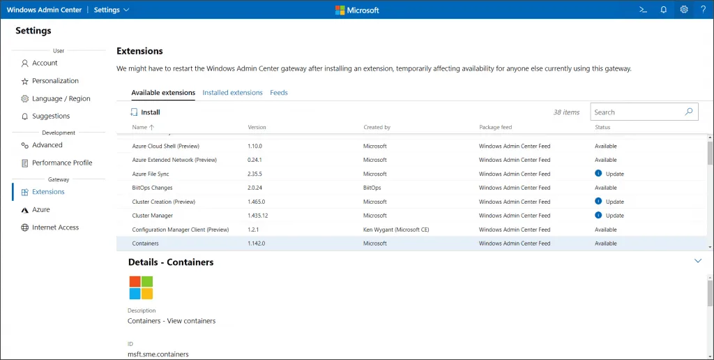 - MS LEARN| Windows Admin Center – Erweiterungen