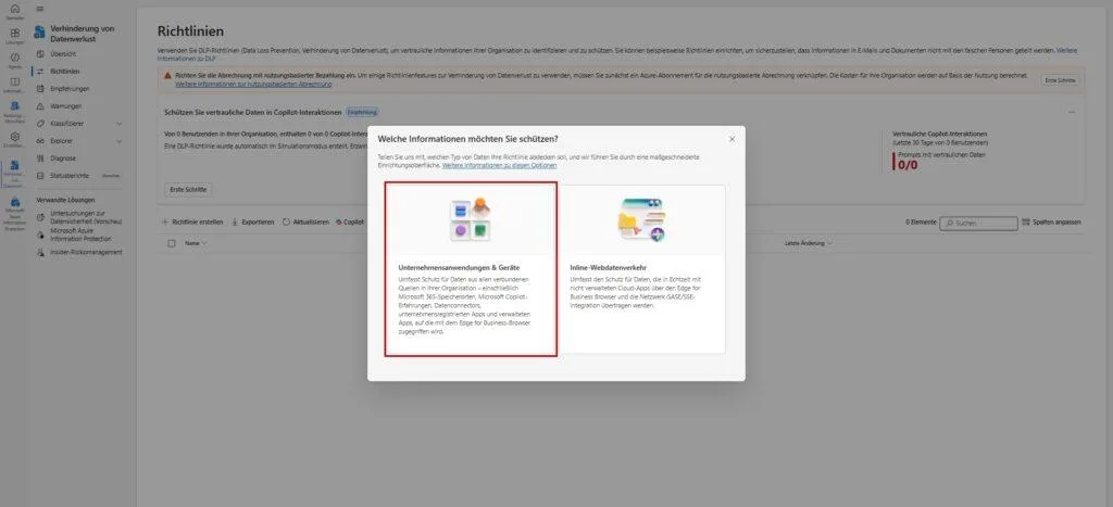 Voraussetzungen: Lizenz: mindestens Microsoft 365 Business Premium Rolle: Compliance Administrator oder Global Admin