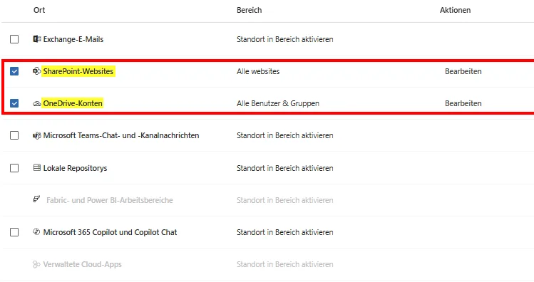 Tipp: Wenn du im Purview Portal Regeln baust, wähle als Speicherort SharePoint-Websites (für Teams Kanäle) und OneDrive-Konten (für Private Chats). Lasse den expliziten Haken bei „Teams-Chat- und Kanalnachrichten“ weg, sofern du keine E5-Lizenz hast, da die Policy sonst oft gar nicht speichert oder Fehler wirft. Wir schützen Teams hier „indirekt“ über den Speicher-Layer!