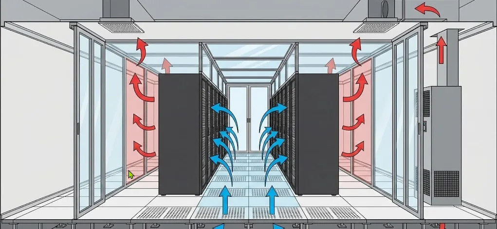 2. Warmgang: Die Server blasen die heiße Luft hinten aus, wo sie direkt abgesaugt wird. Dies verhindert die Vermischung der Luft und senkt die Energiekosten der Klimaanlage massiv.