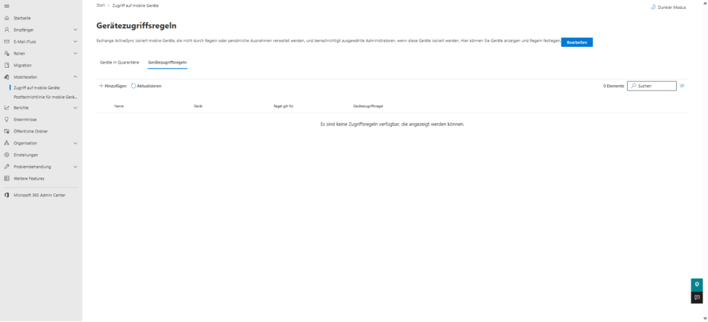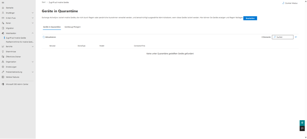 - Basic protection without Intune: If you're not already using full-fledged MDM (like Microsoft Intune), use native mailbox policies for mobile devices. Here you can enforce minimum standards, such as a 6-digit PIN or device encryption, before syncing is allowed.