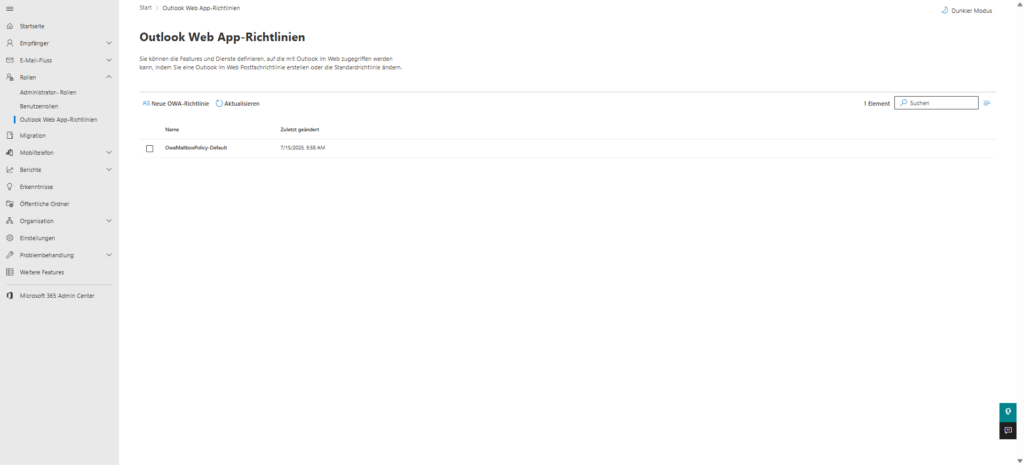 Rollen > Outlook Web App-Richtlinien. - Edit the