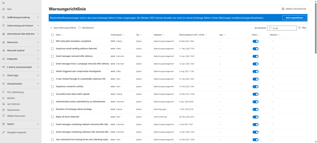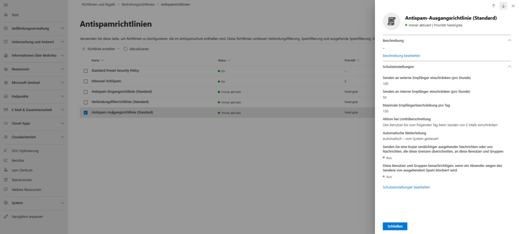 Moving from the Exchange admin center to the Microsoft Defender portal (security.microsoft.com) is critical for security. Here you configure not only static filters, but behavior-based analyses. Navigate to E-Mail und Zusammenarbeit Bedrohungsrichtlinien> Richtlinien und Regeln > .