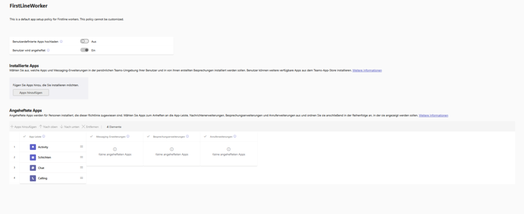 Microsoft often ships with a second standard policy: FirstLineWorker. This is intended for employees in production, retail or service who often work remotely. A look at the list (4 elements) shows the difference: