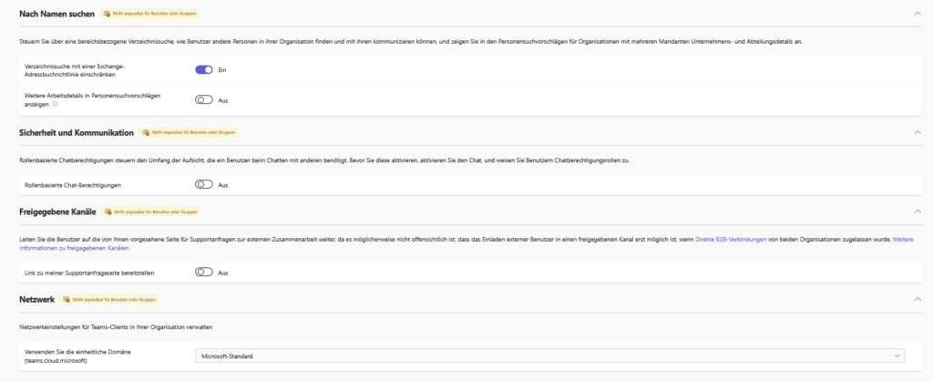 Conclusion on this point: If you have a cloud-only environment and everything here is grayed out or set to "Teams Only": Just ignore this area. It is only important for admins with local Skype servers in the basement.