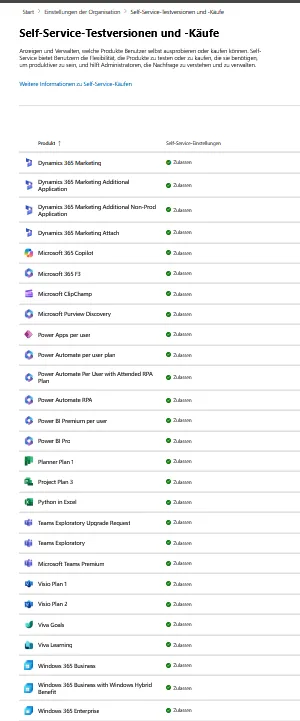 Self-Service-Testversionen und -Käufe