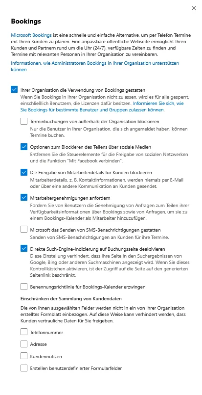 | Bookings-Administration | Informationen zur Verwaltung von Microsoft Bookings inkl. Datenschutzaspekten |