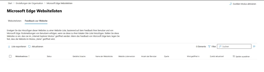 Microsoft Edge Websitelisten