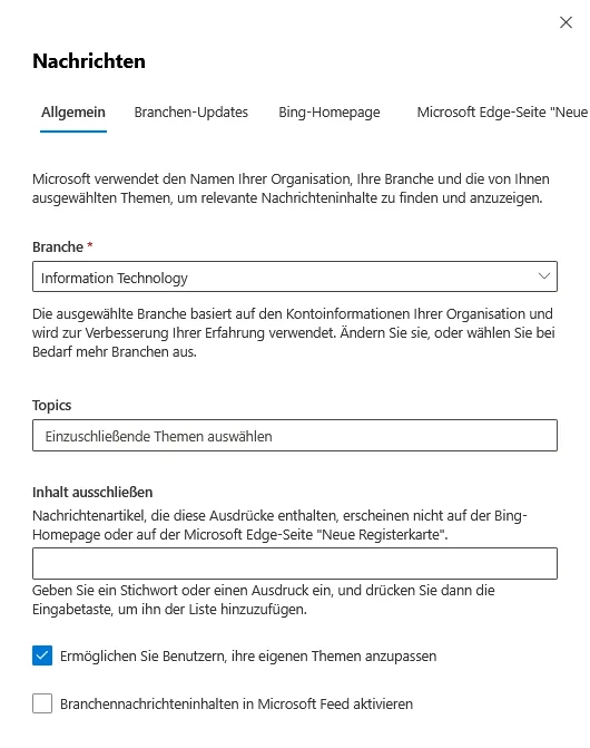 | Search in Bing Configuration | Konfiguration, Datenschutz und Relevanz von Microsoft Search in Bing |