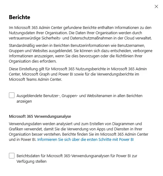 | MS365 | Admin Center | Einstellungen der Organisation – Sicherheit und Datenschutz |