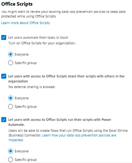 | Office Skripts | Überblick über Funktionen, Sicherheitsaspekte und DLP bei Office-Skripts |